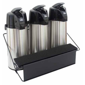 3 station airpot rack, drip trays, shown w/ AASB-22SB airpot. Helps keep multiple airpots organized and easily accessible.