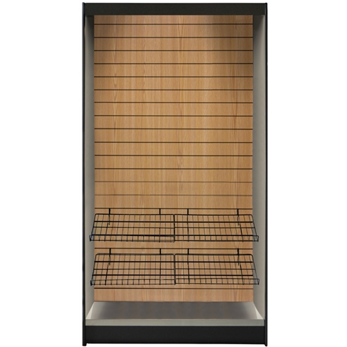 This unit can be used for either a coffee station as shown or as a pay station. It has an LED light for better product display with minimal use of electricity. The MMS 361 is built using our durable double-wall construction. Included is one LED light, 2 built in stainless shelves. Free Options include choice of black or platinum color on the inner walls, choice of oak, walnut, or stainless steel slats. Other upgrade options offered for your convenience are – An economical surge protector for electric, video, modems, with convenient 10 foot power cord. Display kits pictured are not included and must be purchased separately.