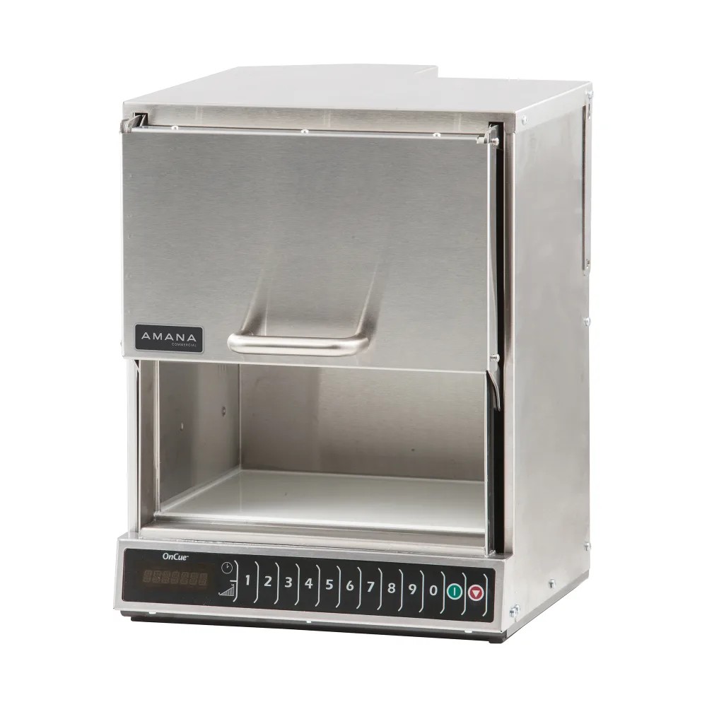 The Amana AOC24 commercial microwave is optimal for foodservice establishments such as casual dining operations, quick-service restaurants, and single-serving applications. This unit's cook times are as much as 42 percent faster than comparative models, while its compact dimensions take up less space than high-powered alternatives. Made of stainless steel, the microwave has a durable and sleek design that eases cleaning. This unit's .32-cubic-foot interior space can accommodate a 6-inch-deep quarter-size food pan, and its 11 power modes and programmable control pad promote flexibility in quickly and easily preparing various dishes.