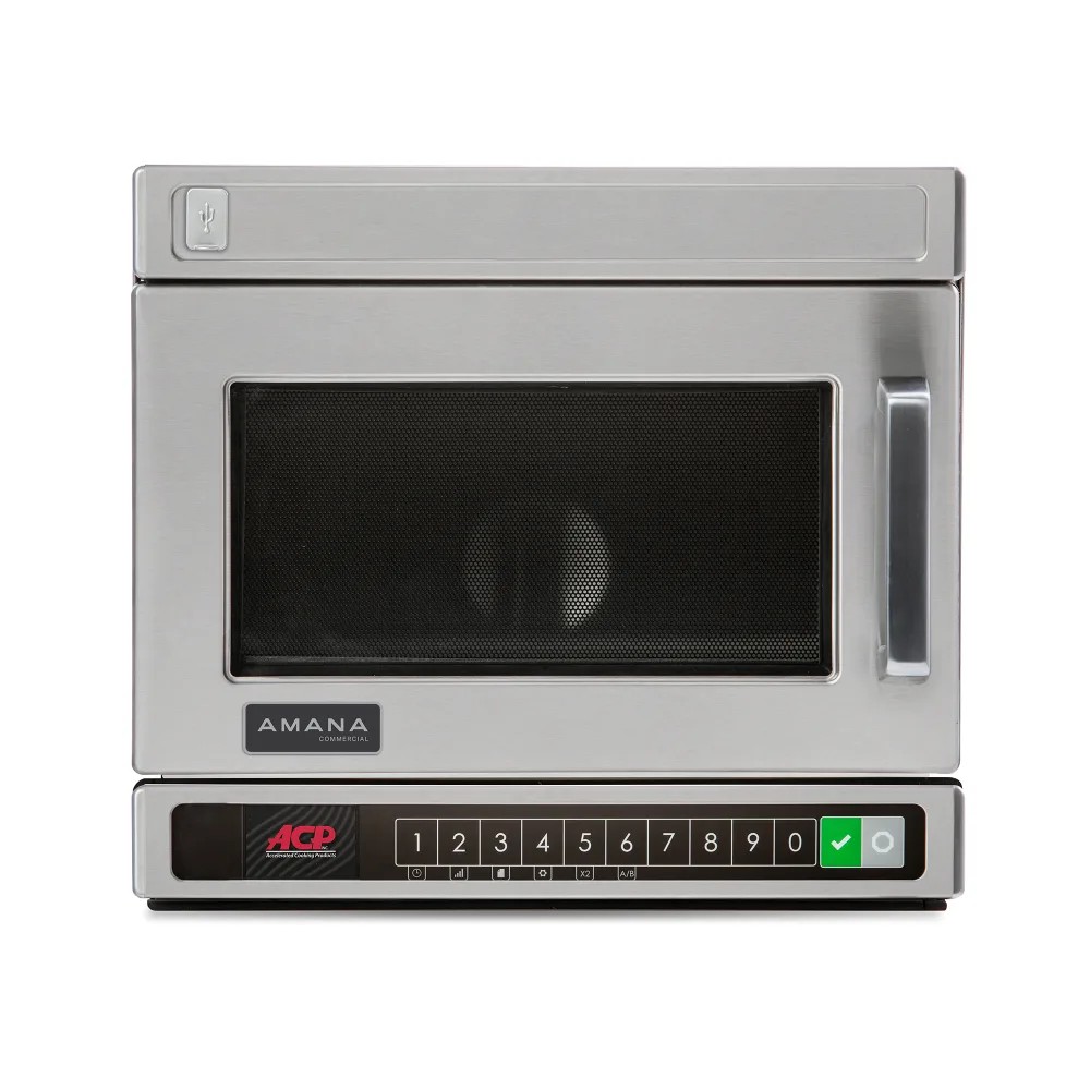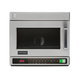 The Amana HDC12YA2 microwave oven can be implemented in many establishments with 24 language options. It has 100 memory settings that enable quick adjustments of time and temperature to prepare popular menu items. To choose between four cooking stages and 11 power levels, this unit is built with touchpad controls and an LCD display. The touchpad is positioned on the bottom of the oven to help users reach it when the oven is stored on a high shelf.
