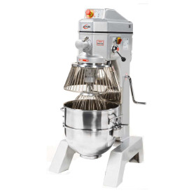 Axis Equipment stainless steel commercial planetary mixer. 1-1/2 HP motor. Reliable and dependable gear drive design. Digital timer (0-30 minutes). 3 speeds controls. Heat-treated hardened alloy steel gears and shaft. Furnished with bowl guard for safety. Side mounted controls (Timer, separate start and emergency stop button). Silent operation. Highest quality aluminum alloy used for maximum standards of hygiene. 6 foot cord and plug. Aluminum flat beater. Aluminum dough hook. An advanced design, highly reliable professional food processing tool, and is ideal for mixing all types of dough, as well as eggs, cream, mayonnaise, etc. These all-purpose mixers use a powerful, planetary mixing action to thoroughly blend, mix and aerateall ingredients with consistent and predictable results. Measures 23-89/128-inches width by 51-3/32-inches height by 27-1/2-inches depth. 220V, 60Hz, single phase voltage. 40-quarts bowl capacity.