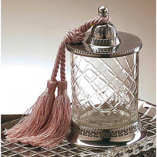 Badash Jar with Tassle Candleholder is 6.5" tall and 2.75" in diameter. They are exquisitely crafted from handcut 24% lead crystal and features radiant diamond cuts and wedges for an elegant look that is both contemporary and classical. Each jar has a non-tarnishing aluminum base and cover. This elegant jar holds a candle, candy, cotton balls...you decide!