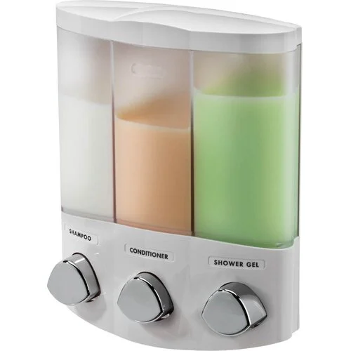 The Euro series of soap and shower dispensers are beautiful solutions for the messy problem of bottle clutter. The Trio is easy to install and easy to use. It is the perfect shower accessory, whether you install it flat on the wall or in a corner to make use of un-usable shower space.