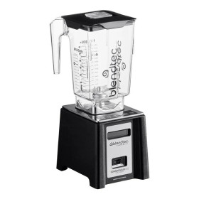 The Blendtec C825C11E-A1GA1D blender has a lightweight FourSide jar with a four-sided design and tapered profile that draw items toward the blade. The jar is made of tough, transparent Tritan for product visibility. There are markings up to 32 ounces on the side for measuring products. This unit can run as many as 150 cycles each day, and its blunt safety blade withstands heavy use.