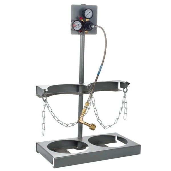 The CO2 twin tank rack is designed to assist operators from losing and misplacing their 20lb CO2 cylinders. This allows operators to switch to a new reserve cylinder when it comes time to replace an empty cylinder in use and allows cylinders to stay upright for safe operation.