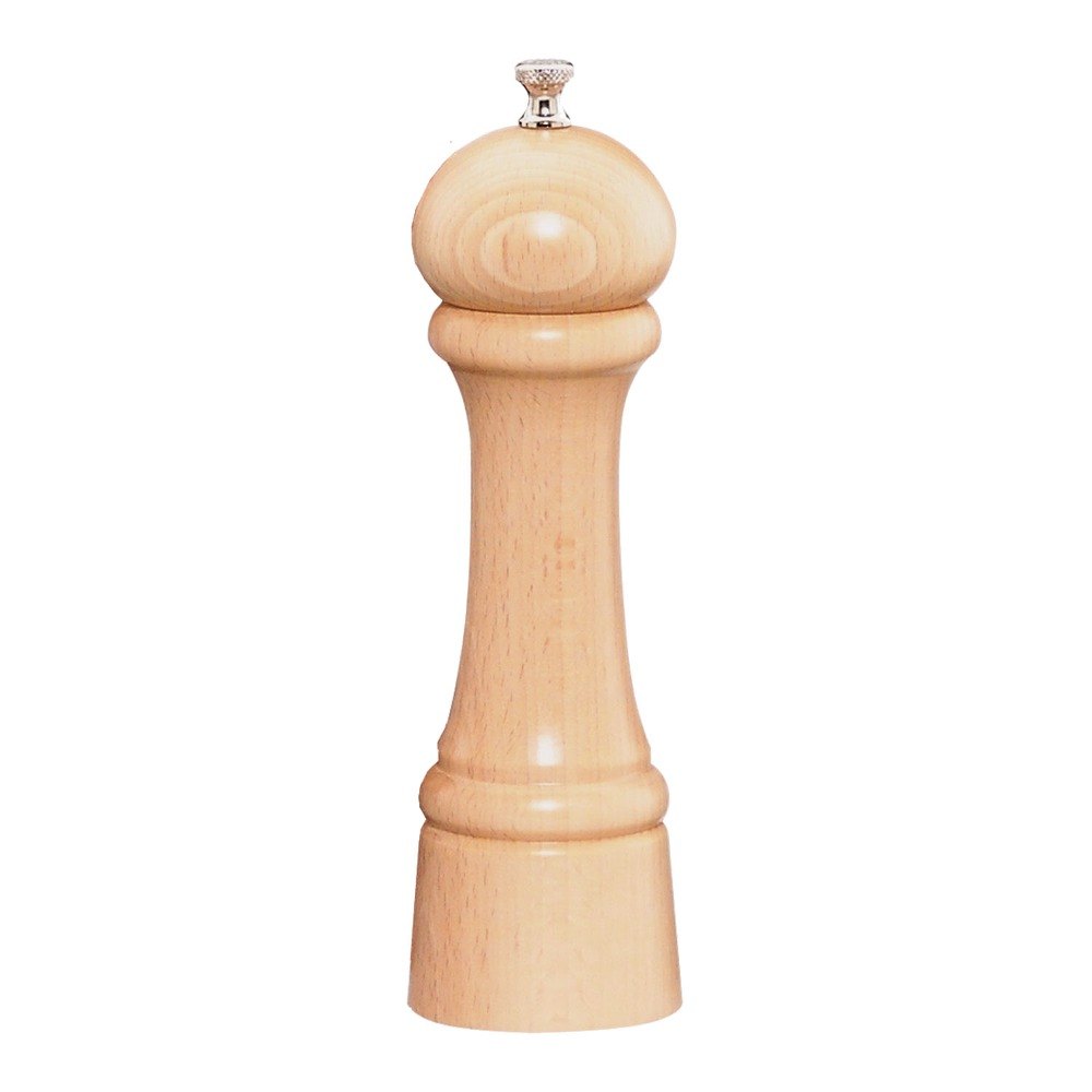 This Professional Series 8 inch natural maple pepper mill is offered in the traditional Windsor style.