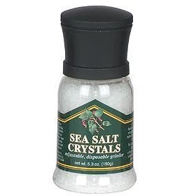 Filled with the highest food-grade solar sea salt crystals from the San Francisco Bay. Kosher.