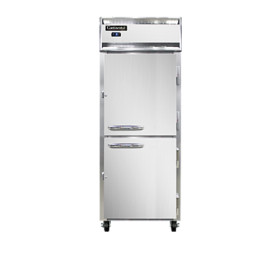 Extra-Wide Freezer, reach-in, 28-1/2" wide one-section, self-contained refrigeration, stainless steel front, aluminum interior & ends, standard depth, half-height solid doors, electronic controller w/ digital display, electric condensate evaporator, 5" casters, 1/3 hp