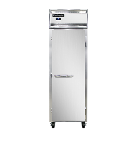 Refrigerator, pass-thru, one-section, self-contained refrigeration, stainless steel front, aluminum interior & ends, standard depth, full-height solid doors, electronic controller w/ digital display, electric condensate evaporator, 5" casters, 1/4 hp