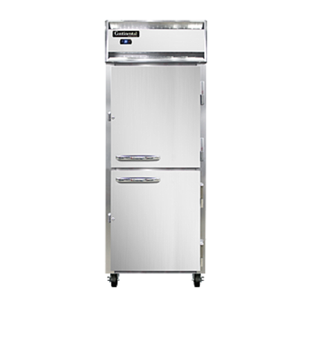 Extra-Wide Refrigerator, reach-in, 28-1/2" wide one-section, self-contained refrigeration, stainless steel front, aluminum interior & ends, standard depth, half-height solid doors, electronic controller w/ digital display, electric condensate evaporator, 5" casters, 1/4 hp