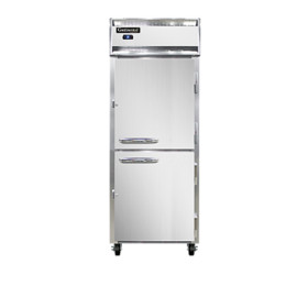 Extra-Wide Refrigerator, pass-thru, 28-1/2" wide one-section, self-contained refrigeration, stainless steel exterior, aluminum interior, standard depth, full-height solid doors, electronic controller w/ digital display, electric condensate evaporator, 5" casters, 1/4 hp
