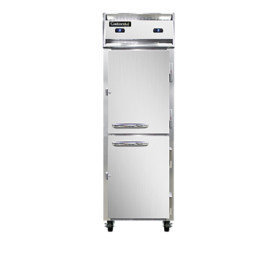 Refrigerator/Freezer, reach-in, one-section over/under, self-contained refrigeration, stainless steel front, aluminum interior & ends, standard depth, half-height solid doors, electronic controller w/ digital display, electric condensate evaporator, 5" casters, dual 1/5 & 1/4 HP