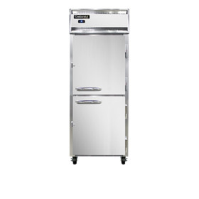 Extra-Wide Refrigerator/Freezer, reach-in, 36-1/4" wide one-section over/under, self-contained refrigeration, stainless steel exterior & interior, standard depth, half-height solid doors, electronic controller w/ digital display, electric condensate evaporator, 5" casters, dual 1/4 & 1/3 HP