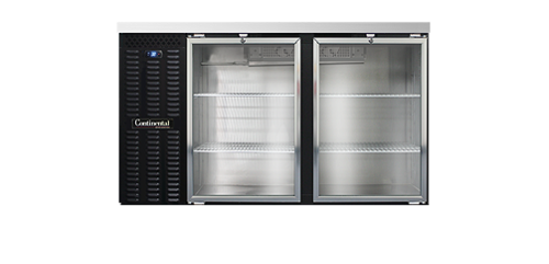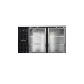 Back Bar Cooler, 59" wide, 36-3/4" high, 22.0 cubic feet, front breathing, stainless steel top, (2) glass doors with locks, black vinyl exterior, galvanized interior with reinforced stainless steel floor, epoxy coated steel shelves, condensate evaporator, self-contained refrigeration, 1/3 hp,