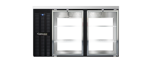 Back Bar Cooler, pass-thru, 59" wide, 36-3/4" high, 15.0 cubic feet, front breathing, stainless steel top, (4) glass doors with locks, 25" shallow depth, black vinyl exterior, galvanized interior with reinforced stainless steel floor, epoxy coated steel shelves, condensate evaporator, self-contained refrigeration, 1/3 hp,