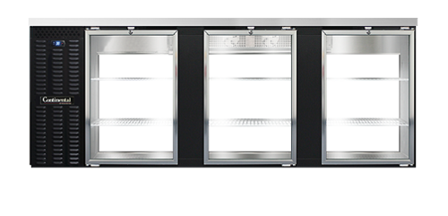 Back Bar Cooler, pass-thru, 90" wide, 36-3/4" high, 35.0 cubic feet, front breathing, stainless steel top, (6) glass doors with locks, black vinyl exterior, galvanized interior with reinforced stainless steel floor, epoxy coated steel shelves, condensate evaporator, self-contained refrigeration, 1/2 hp,
