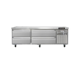 Refrigerator Griddle Stand, two-section, (4) drawers - two drawers accommodates (1) 12" x 20" x 6" & (1) 6" x 20" x 6", two drawers accommodates (2) 12" x 20" x 6", dial thermometer stainless steel top with drip guard marine edge, stainless steel exterior and interior, 4" casters, self-contained refrigeration, 1/4 hp, 10' cord