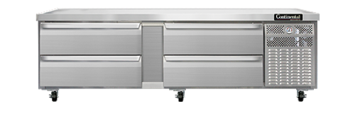 Refrigerator Griddle Stand, two-section, (4) drawers - four drawers accommodates (2) 12" x 20" x 6" dial thermometer stainless steel top with drip guard marine edge, stainless steel exterior and interior, 4" casters, self-contained refrigeration, 1/3 hp, 10' cord