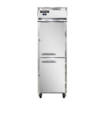 Designer Line Refrigerator, reach-in, one-section, self-contained refrigeration, stainless steel exterior & interior, standard depth cabinet, half-height solid doors, exterior digital thermometer, 6" stainless steel legs, 1/4 hp