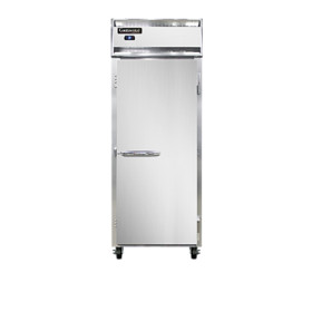 Designer Line Wide Refrigerator, reach-in, 28-1/2" wide one-section, self-contained refrigeration, stainless steel exterior & interior, standard depth cabinet, wide full-height solid door, exterior digital thermometer, 6" stainless steel legs, 1/4 hp