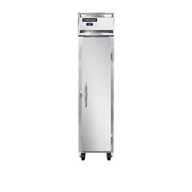 Designer Slim Line Refrigerator, reach-in, 17-3/4" wide one-section, self-contained refrigeration, stainless steel exterior & interior, stainless steel front, standard depth cabinet, narrow full-height solid door, exterior digital thermometer, 6" stainless steel legs, 1/4 hp