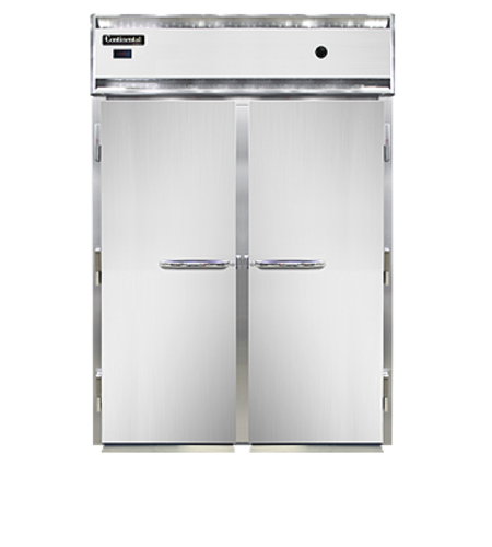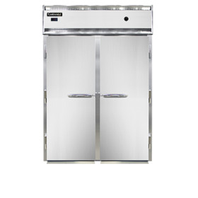 Designer Line Extra-High Warmer, roll-in, two-section, stainless steel front, aluminum interior & ends, standard depth cabinet, full-height solid doors, exterior digital thermometer