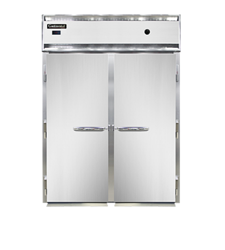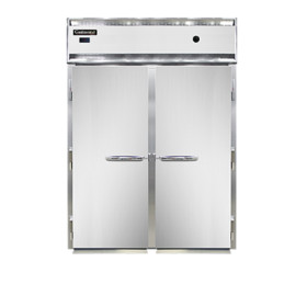 Designer Line Warmer, roll-in, two-section, stainless steel exterior & interior, standard depth cabinet, full-height solid doors, exterior digital thermometer