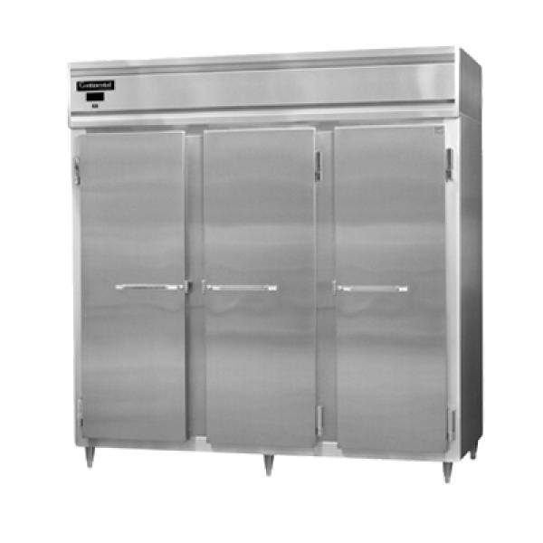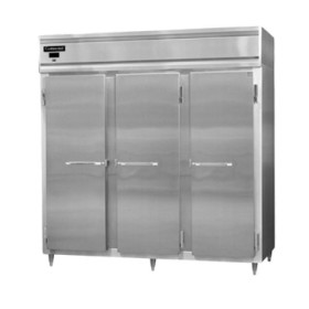 Designer Line Heated Cabinet, extra wide reach-in, three section, stainless steel exterior & interior, standard depth, hinged doors, with exterior digital thermometer