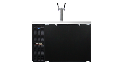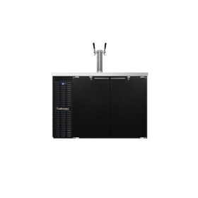 Draft Beer Cooler, 50" wide, 16.0 cubic feet, front breathing, (2) straight wall keg capacity, stainless steel top, (1) column with (2) faucets & drainer, (2) doors with locks, black vinyl exterior, galvanized interior with reinforced stainless steel floor, self-contained refrigeration, 1/3 hp