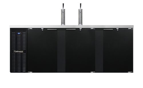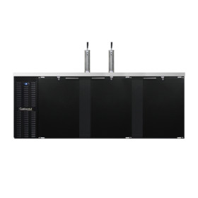 Draft Beer Cooler, 90" wide, 35.0 cubic feet, front breathing, (4) barrel or (5) straight wall keg capacity, stainless steel top with (2) columns & drainer, (3) doors with locks, black vinyl exterior, galvanized interior with reinforced stainless steel floor, self-contained refrigeration, 1/2 hp