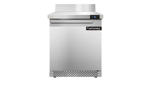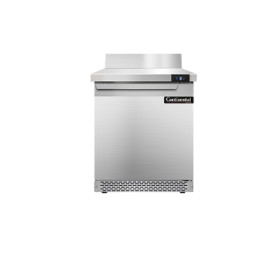 Work Top Freezer, Front Breather, 27" wide, one-section, stainless steel top with 5 1/2" backsplash, (1) field rehingable door, stainless steel front and end panels, aluminum interior, 3-5/8" casters, rear mounted self-contained refrigeration, 1/3 hp