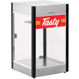 Expand your concession offerings with Cretors Display cabinets. Many times concession stands areas require added warming capabilities and storage. Our sleek yet practical display cabinets are built to ensure product freshness, and are the perfect additions to help increase impulse sales by displaying fresh items ready to be served. The Pretzel Display Case with rotating rack holds up to 60 savory pretzels. Tempered Safety glass, removable doors and rubber feet make this display case easy to use and maintain. Interior lighting highlights fresh snacks.