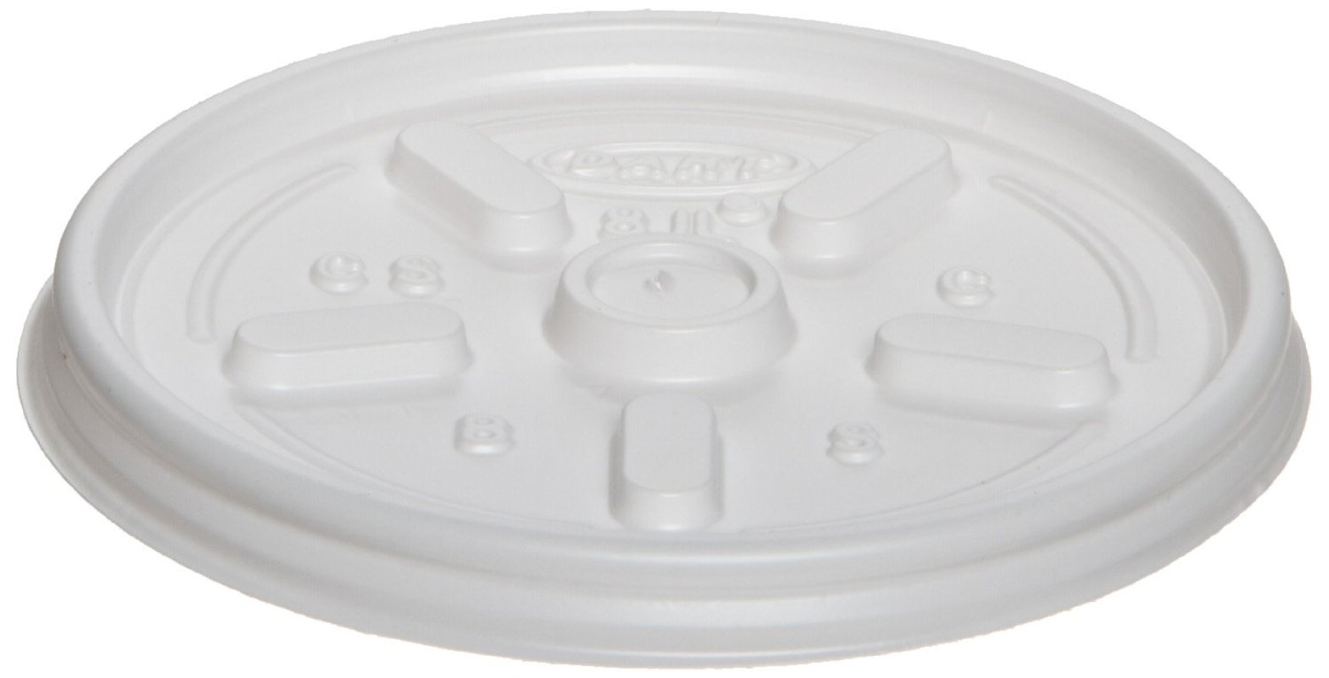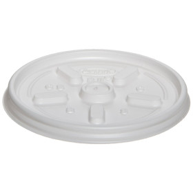 This Dart 8JL white plastic vented lid fits securely to help prevent spills. Sold 1000 per case.