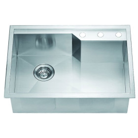 Dawn® New Dual Mount Square Sinks feature zero radius corners to create a chic, angular look and to maximize useable basin space. The drain grooves are designed to channel water directly to the drain and to prevent water overflow. The sinks can be installed undercounter or self-rimming. They are made of 18 gauge stainless steel and are reinforced with sound absorption pads and coating.
