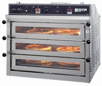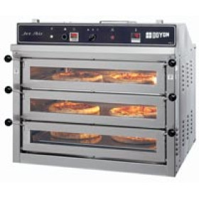 Doyon's PIZ series are the most advanced and productive compact pizza ovens on the market. The unique Jet Air sytems helps you bake 30% to 50% faster and more evenly than traditional deck ovens. These exclusive ovens occupy 40% to 50% less floor space for the same production. Preheats in 15 to 20 minutes or less at the start of the day and will bake your pizzas in 5 to 6 minutes at 460° F (238° C). The heat provided from the nickel coated perforated deck makes a nice even crust thanks to the air moving through the holes and from the heat of the metal deck itself. You can remove a product and put another one at the same place without concern about cold spots you get from traditional deck ovens. Reduce your energy costs by more than 50% compared to a deck oven.The air is recycled and the heating system will be on about 60% of the time because of it's high efficiency. The PIZ series is priced at half the price of conveyor ovens. It takes less floor space, offers greater menu flexibility and higher quality baking results. The PIZ series is priced a little higher then traditional deck ovens but it makes up the difference in increased production, better performance, energy and labor savings