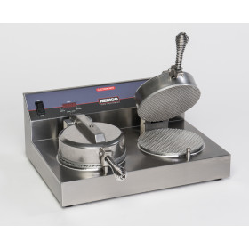 NEMCO Cone Bakers feature digital controls for fast, convenient, precision baking of versatile waffle cones. Heavy-duty, lock-down, fixed, seven-inch aluminum grids provide uniform thickness, while flat-ring heating elements bake to a taste-tempting, overall golden brown. Preheats to ideal temperature in just 12 minutes and provides up to 60 cones per hour, per grid. Easy-to-read LED display counts down baking time. Audible alarm signals the minute baking is complete. Coiled, spring-type handle remains cool for fast, easy handling.