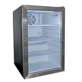 The Excellence Countertop Glass Door Cooler comes standard with a fully insulated glass door with black or stainless steel trim, interior product light, recessed handle and reversible door.