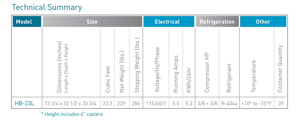 The Excellence Flat Top Jumbo Bunker Freezer comes standard with baskets & dividers, easy to open lids, 2 locking casters, high efficiency compressors, pre-coated steel inner tank and double-sided LED lighting.