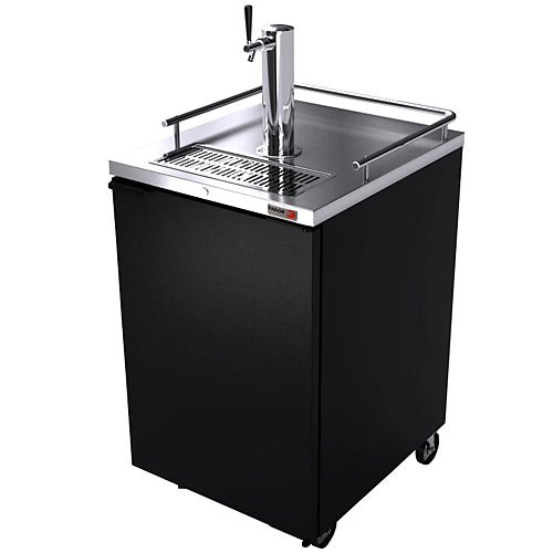 Draft Beer Cooler Portable (1) keg capacity stainless steel front sides top and back s/s floor with removable polymer protection analog thermostat (1) tower (1) tap (1) door w/locks self-contained refrigeration castors 1/6 hp ETL cETLus UL NSF-7 Made in North America
