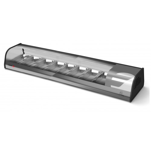 68" Sushi Case Display Refrigrerator, 68"W X 15.75"D X 9-7/8"H, 115 Volt, 4.2 Amps, 1/5 HP compressor, longer and maintain optimal temperature at 36 to 46 degrees, front curve glass design.
