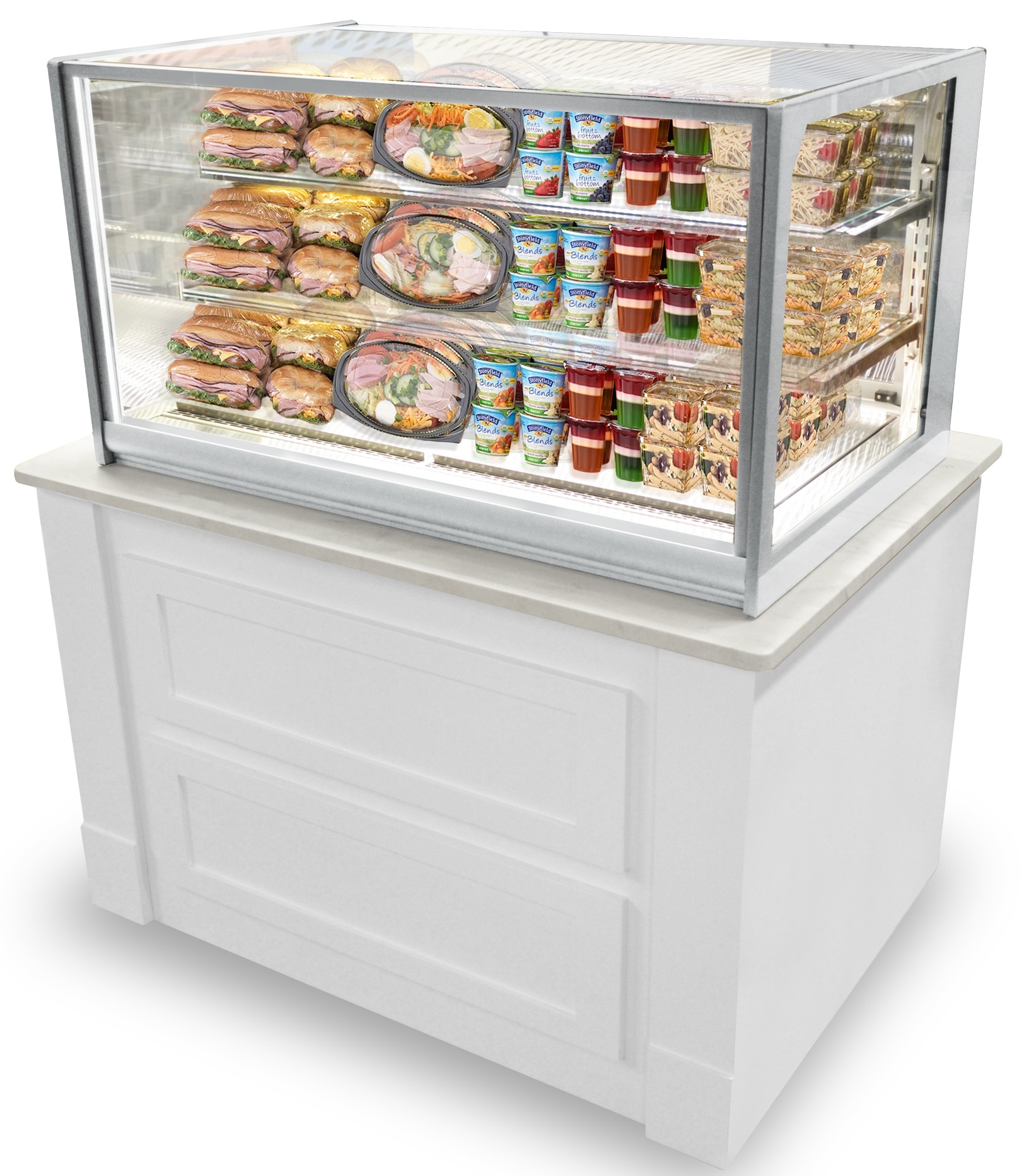 3 Tiers of Adjustable Shelves, Tempered Tilt-Out Front Glass, Tempered Glass Top, Ends and Doors, Removable Sliding Rear Doors, LED Top Light and Shelf Lights, Steel Base Construction, Self Contained Refrigeration with PTC Condensate Evaporator, Adjustable Temperature Control, Stainless Steel Interior, Gray Textured Exterior Finish, UL, C-UL, and Sanitation Listed for Type II Conditions, Proper Ventilation of Counter is required for Proper Performance, Easily Accessible Light Switch, Power Switch, and Electronic Temperature Control