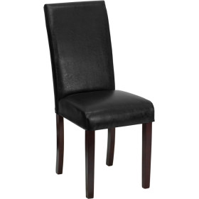 - The classic leather upholstered parsons chair is a versatile seating option for your home and office.Sleek lined panel stitching, high density foam padding, solid hardwood frame construction, mahogany frame finish and leather upholstery make them comfortable, durable and attractive. Parsons Chairs with leather upholstery bring a polished, professional look to the office. And leather's stain resistance and easy cleaning is especially important in the dining room. Skirted chair covers can be used to soften their lines for living rooms and bedrooms. Order a set of Parsons Chairs for your dining room and a couple more for the office!