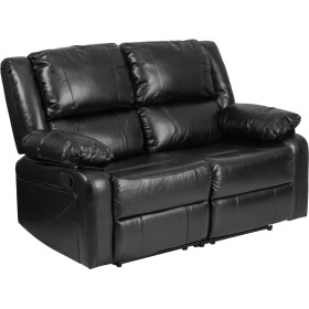 The contemporary Harmony Series Black Leather Reclining Loveseat offers the perfect balance of relaxation and comfort with generously padded arms and plush pillow back cushions.Reclining furniture offers the best in relaxation for you to kick up your feet to watch TV, work on a laptop, or to just hang out with family and friends. Recliners provide great neck and lumbar support, making them the most popular seating choice for everyday use.The casual design of this loveseat will make it a great addition to your living room or family room to relax or to just hang out.