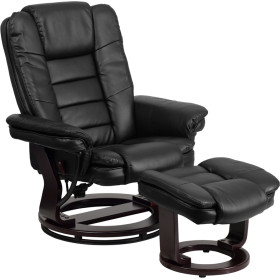 - There's no better way to enjoy a movie, a book or just some down time than in a recliner. This set features thickly padded arms and tastefully exposed wood frames. This uniquely designed recliner features a ball-bearing swiveling base that makes swiveling effortless. This set is not only perfect in the home, but makes for a great addition in the office. The durable leather upholstery allows for easy cleaning and regular care.
