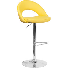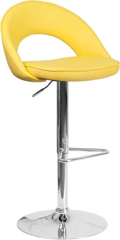 - This contemporary barstool features a rounded back with a decorative zipper trim design. Upholstered in a durable vinyl upholstery, this chair is easy to clean. The height adjustable swivel seat adjusts from counter to bar height with the handle located below the seat. The triangle shaped chrome footrest supports your feet while also providing a contemporary chic design. To help protect your floors, the base features an embedded plastic ring.