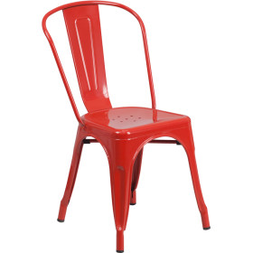 - Completely transform your living or restaurant space with this vintage style chair. Adding colorful chairs can rev up any setting. The versatility of this chair easily conforms in different environments. Chairs are lightweight and easily stack for storing. A cross brace underneath the seat adds extra stability and features plastic caps that prevent the finish from scratching when stacked. The frame is designed for all-weather use making it a great option for indoor and outdoor settings. For longevity, care should be taken to protect from long periods of wet weather. The legs have protective floor glides that prevent damage to flooring. So whether you're using this chair for your kitchen, patio or bistro, it is sure to liven up your decor.