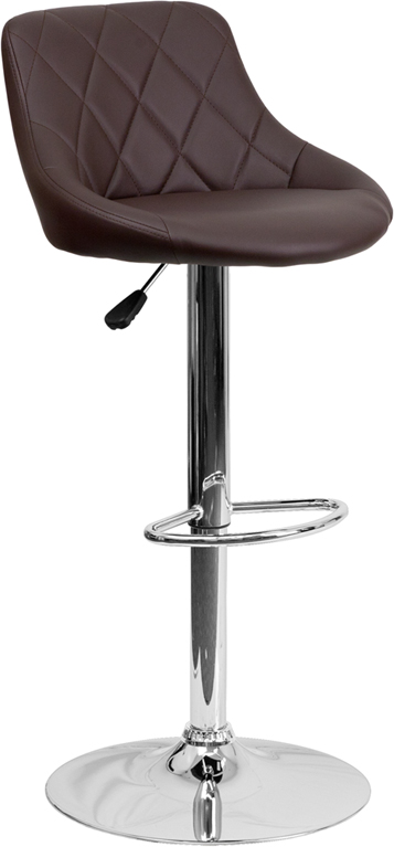 - This dual purpose stool easily adjusts from counter to bar height. The bucket seat design will make this a great accent chair around the bar area or kitchen. The easy to clean vinyl upholstery is an added bonus when stool is used regularly. The height adjustable swivel seat adjusts from counter to bar height with the handle located below the seat. The chrome footrest supports your feet while also providing a contemporary chic design. To help protect your floors, the base features an embedded plastic ring.