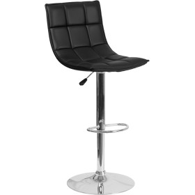 - This sleek dual purpose stool easily adjusts from counter to bar height. The elongated, curved back allows you to lean into the curved back. The easy to clean vinyl upholstery is an added bonus when stool is used regularly. The height adjustable swivel seat adjusts from counter to bar height with the handle located below the seat. The chrome footrest supports your feet while also providing a contemporary chic design. To help protect your floors, the base features an embedded plastic ring.