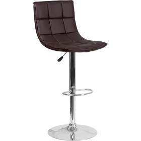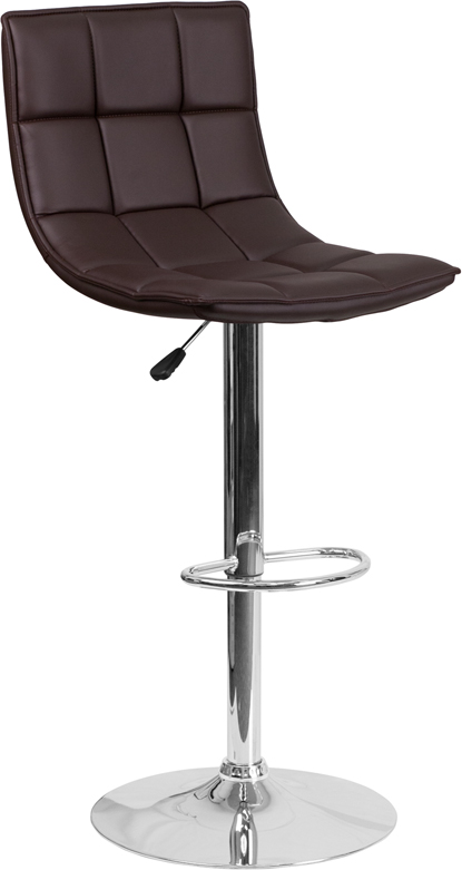 - This sleek dual purpose stool easily adjusts from counter to bar height. The elongated, curved back allows you to lean into the curved back. The easy to clean vinyl upholstery is an added bonus when stool is used regularly. The height adjustable swivel seat adjusts from counter to bar height with the handle located below the seat. The chrome footrest supports your feet while also providing a contemporary chic design. To help protect your floors, the base features an embedded plastic ring.