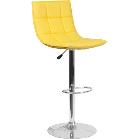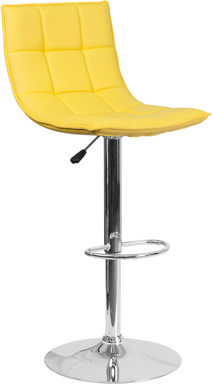 - This sleek dual purpose stool easily adjusts from counter to bar height. The elongated, curved back allows you to lean into the curved back. The easy to clean vinyl upholstery is an added bonus when stool is used regularly. The height adjustable swivel seat adjusts from counter to bar height with the handle located below the seat. The chrome footrest supports your feet while also providing a contemporary chic design. To help protect your floors, the base features an embedded plastic ring.